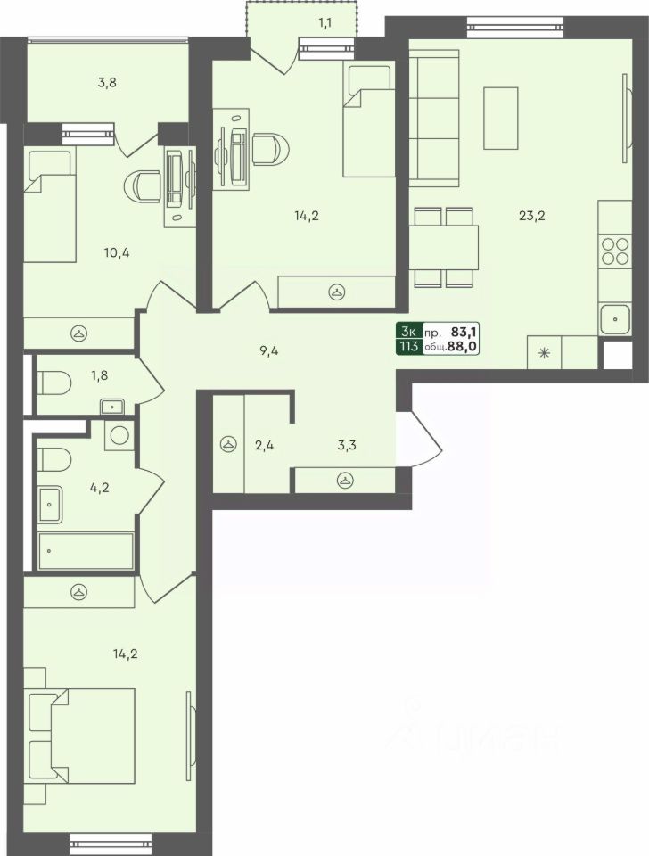 Продаётся 3-комнатная квартира в строящемся доме (ГП-3 (Бульварная, 2)), срок сдачи: IV-кв. 2025, общей площадью 88 кв.м., на 3 этаже. Проект в формате "Дома не выше сосен" отражает синтез великолепной архитектуры, престижной инфраструктуры и разумной стоимости. Жилье повышенного качества по доступной цене городского типа (квартиры), таунхаусы и индивидуальные дома с земельными участками характеризуются высокой транспортной доступностью исторического Тобольского тракта и формируют гармоничную и экологичную среду для комфортного проживания.