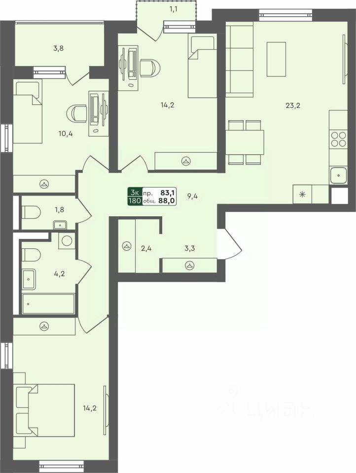 Продаётся 3-комнатная квартира в строящемся доме (ГП-3 (Бульварная, 2)), срок сдачи: IV-кв. 2025, общей площадью 88 кв.м., на 2 этаже. Проект в формате "Дома не выше сосен" отражает синтез великолепной архитектуры, престижной инфраструктуры и разумной стоимости. Жилье повышенного качества по доступной цене городского типа (квартиры), таунхаусы и индивидуальные дома с земельными участками характеризуются высокой транспортной доступностью исторического Тобольского тракта и формируют гармоничную и экологичную среду для комфортного проживания.