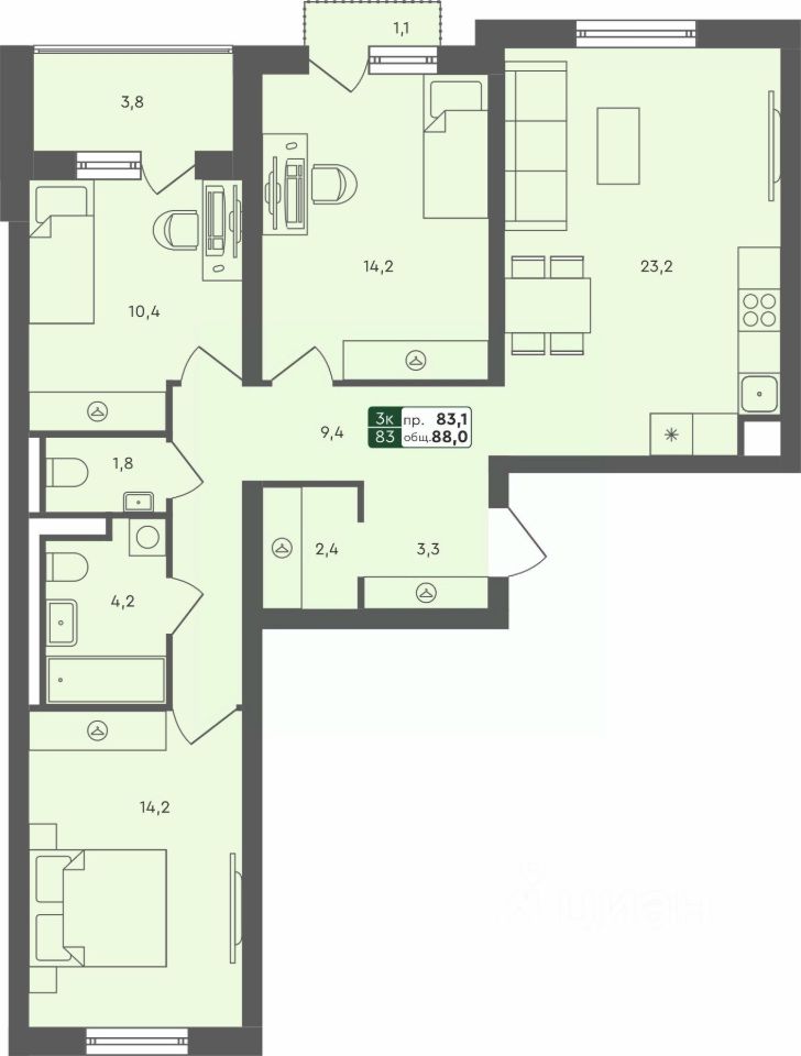 Продаётся 3-комнатная квартира в строящемся доме (ГП-3 (Бульварная, 2)), срок сдачи: IV-кв. 2025, общей площадью 88 кв.м., на 3 этаже. Проект в формате "Дома не выше сосен" отражает синтез великолепной архитектуры, престижной инфраструктуры и разумной стоимости. Жилье повышенного качества по доступной цене городского типа (квартиры), таунхаусы и индивидуальные дома с земельными участками характеризуются высокой транспортной доступностью исторического Тобольского тракта и формируют гармоничную и экологичную среду для комфортного проживания.