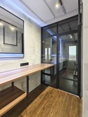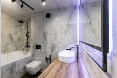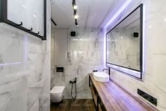 Дизайн интерьера разработан в современном стиле Хай тек и минимализм. Стены оснащены шумоизоляцией. В ремонте использовались только самые качественные долговечные материалы.