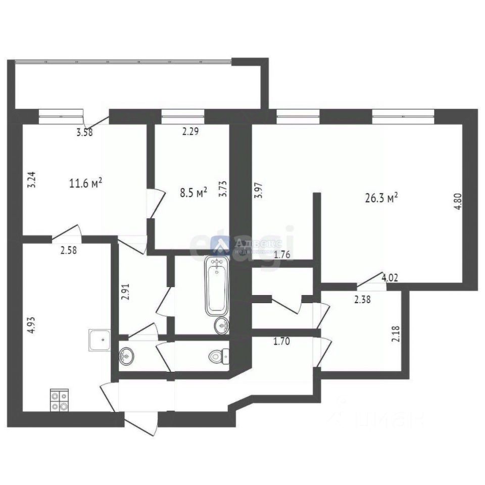При желании, данную квартиру можно легко превратить в нежилое помещение, ведь ее окна выходят на первую линию. Центр города ждет своих новых жителей!