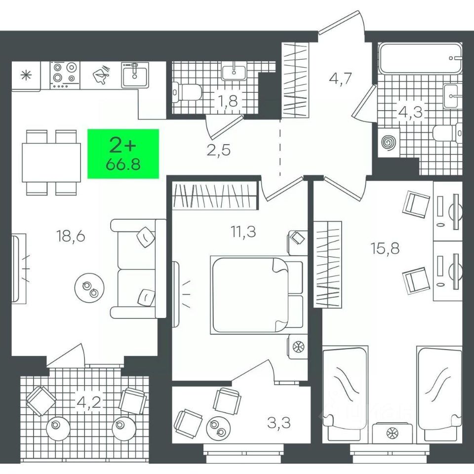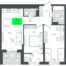 Продаётся 2-комнатная квартира в строящемся доме (3-В6.1 (Малкова, 15)), срок сдачи: III-кв. 2026, общей площадью 66.89 кв.м., на 18 этаже. Компания 4D приступила к строительству нового жилого комплекса "Гранд квартал". Новый ЖК находится в зеленой зоне Калининского района, южнее микрорайона Тюменская слобода.