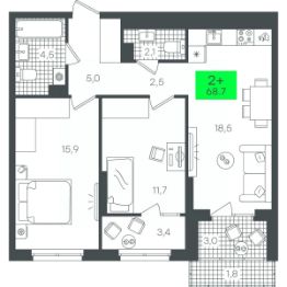 Продаётся 2-комнатная квартира в строящемся доме (В5.1 (Малкова, 19)), срок сдачи: III-кв. 2026, общей площадью 70.86 кв.м., на 6 этаже. Компания 4D приступила к строительству нового жилого комплекса "Гранд квартал". Новый ЖК находится в зеленой зоне Калининского района, южнее микрорайона Тюменская слобода.