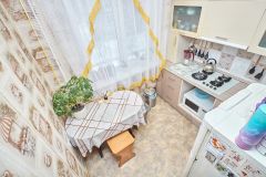 Косметический ремонт: Квартира полностью готова для комфортного проживания без дополнительных вложений. На полу линолеум, обои на стенах, натяжные потолки, пластиковые окна, застекленный балкон, санузел в плитке, остается практически вся мебель и техника.