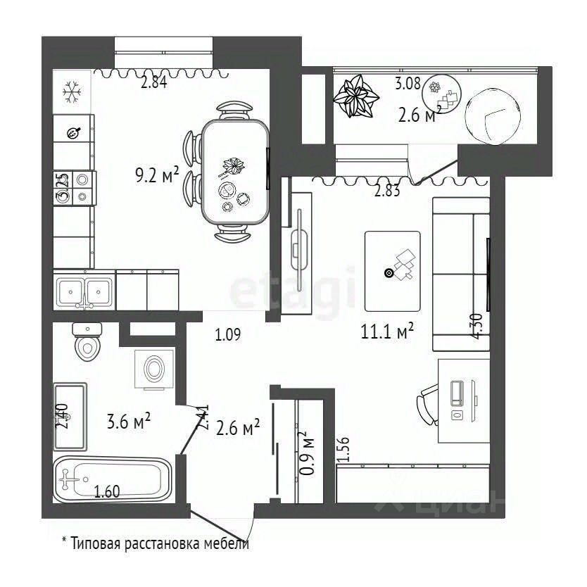 Санузел совмещённый, что обеспечивает дополнительный комфорт.