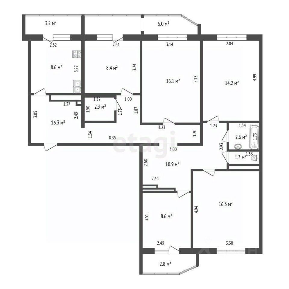 Объект отличается продуманной планировкой: изолированные комнаты расположены по разным сторонам, что обеспечивает приватность, а просторная кухня 8,6 кв.м позволяет удобно разместить обеденную зону.