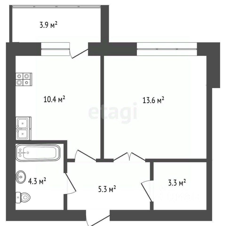 Уютная кухня площадью 10,4 квадратных метра станет прекрасным местом для кулинарных экспериментов, а светлая комната в 13 квадратных метров подарит вам ощущение простора и уюта