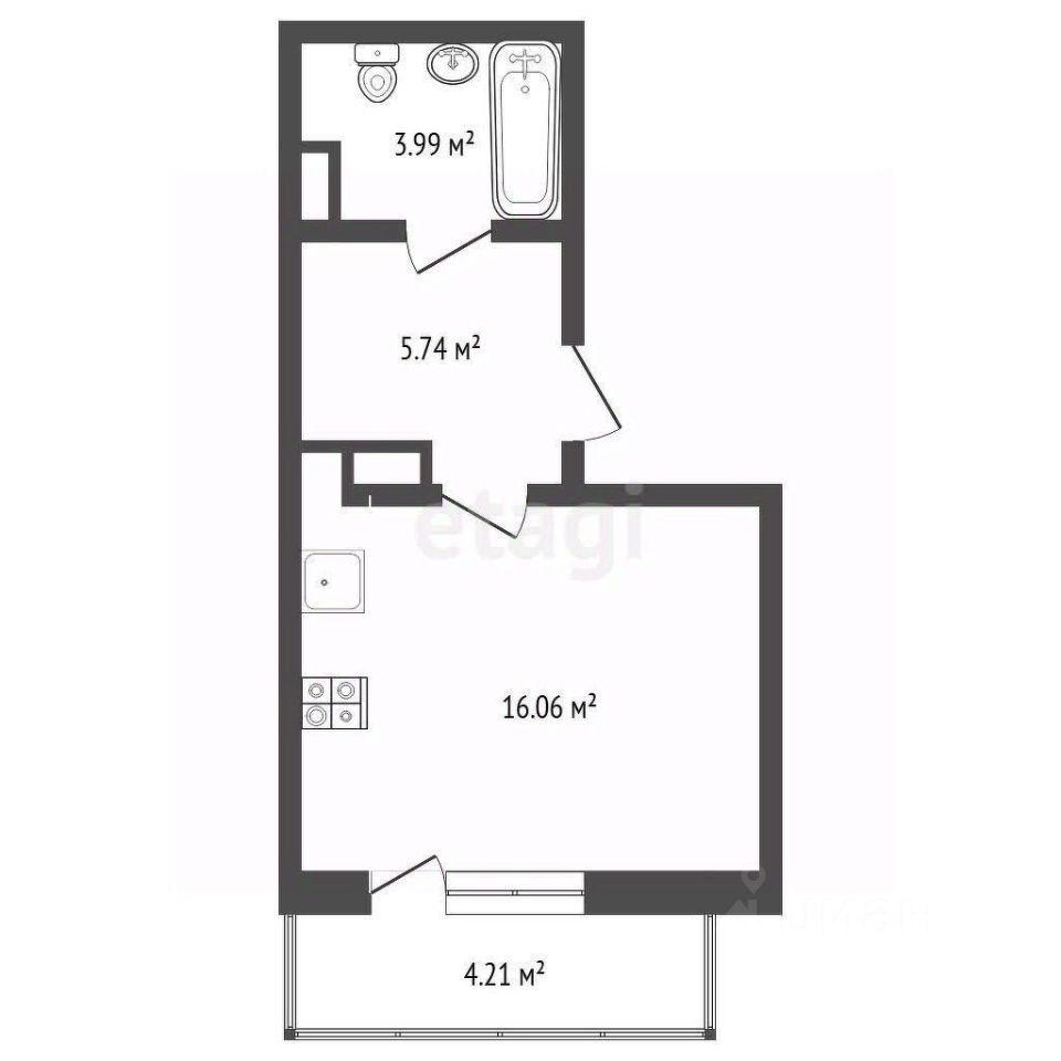 Квартира встречает просторной прихожей. Удобная ванная комната позволяет разместить всю необходимую сантехнику. Грамотная планировка позволяет выделить уютную приватную зону спальни, скрытую от посторонних глаз при входе.