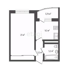 Квартира располагается на комфортном 4 этаже, общей площадью 41,1 кв.м - комната 23 кв.м, кухня - 9.3 кв.м. Просторный совмещенный сан узел 5.2 кв.м.