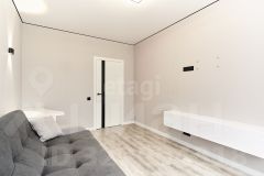 Выполнен качественный ремонт, кварцвиниловая плитка на полу, обоями на флизелиновой основе, натяжными потолками и застекленным балконом.