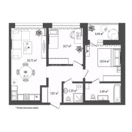 Высота оконного проема 180. Планировка 2+. Кухня-гостиная почти 21 м2, просторная лоджия, спальная комната со своим сан узлом.