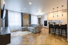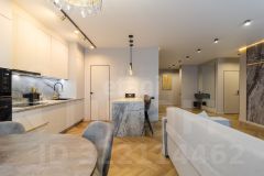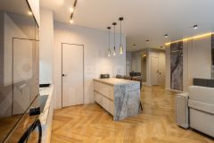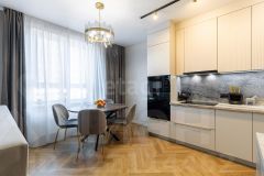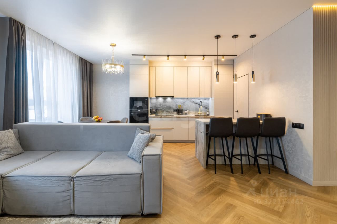 Квартира оформлена в современном дизайнерском стиле, который сочетает в себе элегантность и практичность. Просторная кухня-гостиная станет центром семейных встреч и дружеских посиделок, а отдельные комнаты обеспечат уединение и комфорт для каждого члена семьи.