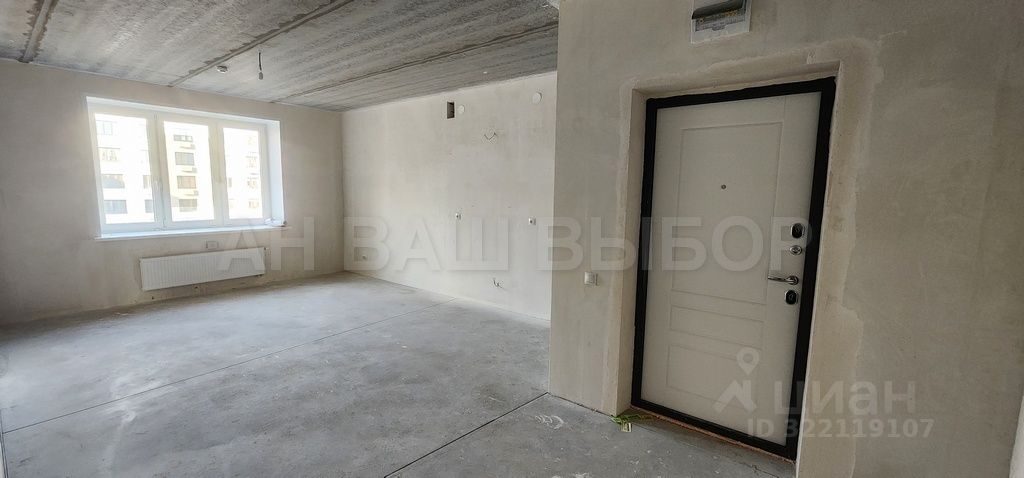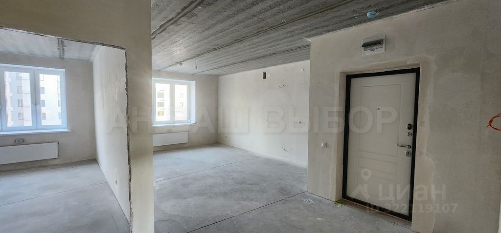 Чистовая отделка: стяжка пола, стены выровнены и оштукатурены, разведена электропроводка, установлены розетки и выключатели, счётчики на воду.