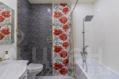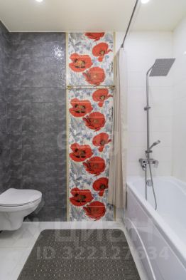 • Просторный санузел с редкой отделкой — керамика с маковым акцентом
