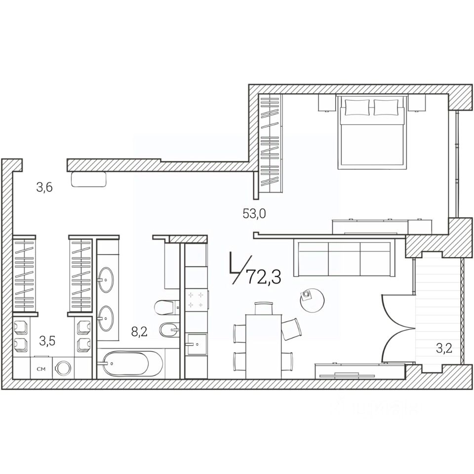 1-комн. апартаменты от застройщика в ЖК "1А Первомайская" на 6 этаже. Апартаменты без отделки, после оформления собственности можно делать ремонт. Общая площадь: 72.3 кв.м., жилая: 19.9 кв.м., площадь просторной кухни-гостиной: 22.4 кв.м. Все окна выходят на одну сторону. В апартаментах одна лоджия, один совмещенный санузел. Высота потолков 2.7 м.