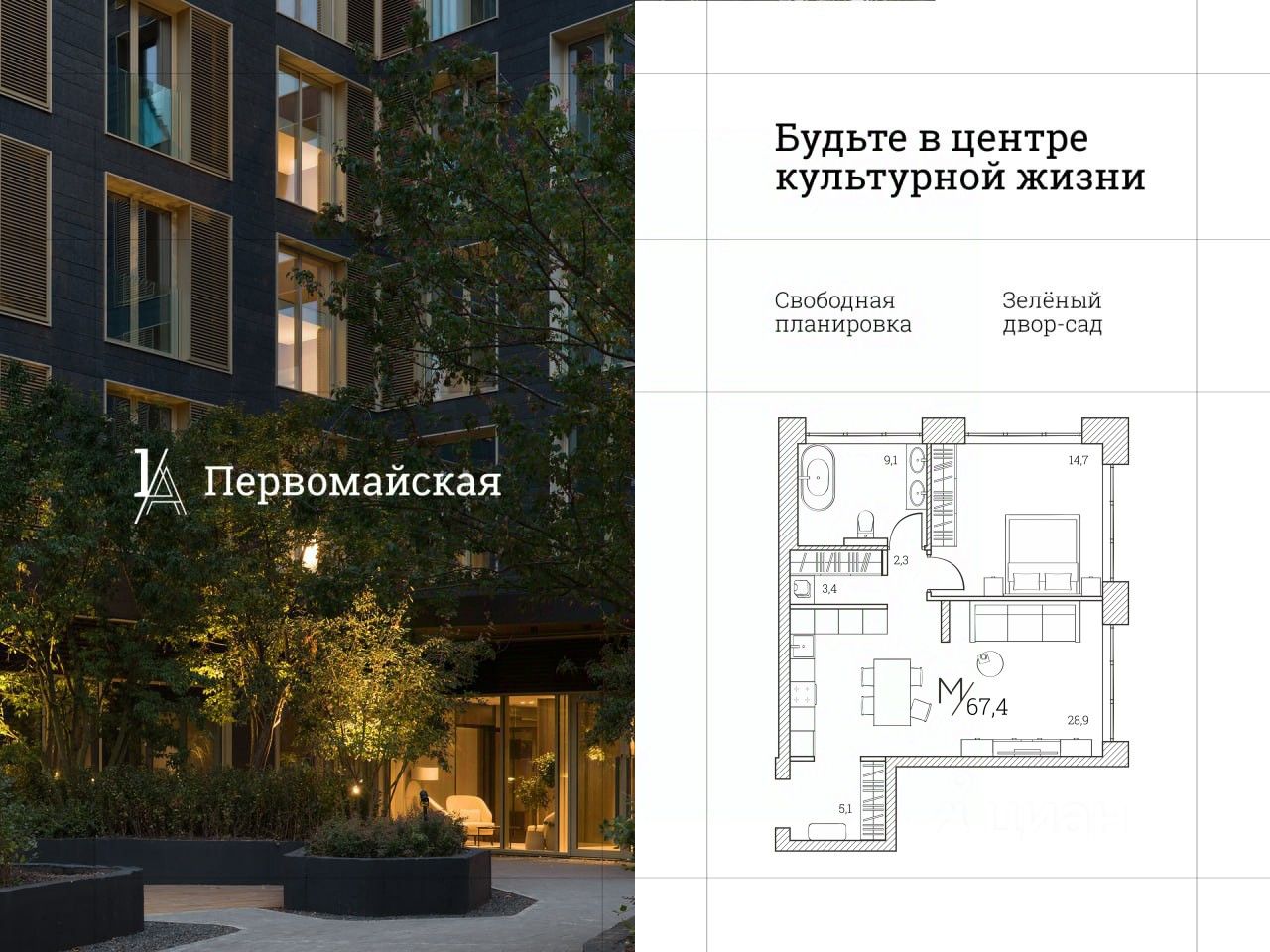 Просторные 1-комн. апартаменты в ЖК "1А Первомайская" на 3 этаже. Апартаменты без отделки, после получения ключей можно делать ремонт. Общая площадь: 64 кв.м., жилая: 14.7 кв.м., площадь просторной кухни-гостиной: 28.9 кв.м. Угловая квартира, окна oбecпeчивaют paвнoмepнoe ocвeщeниe в тeчeниe дня. В апартаментах один совмещенный санузел. Высота потолков 2.7 м.