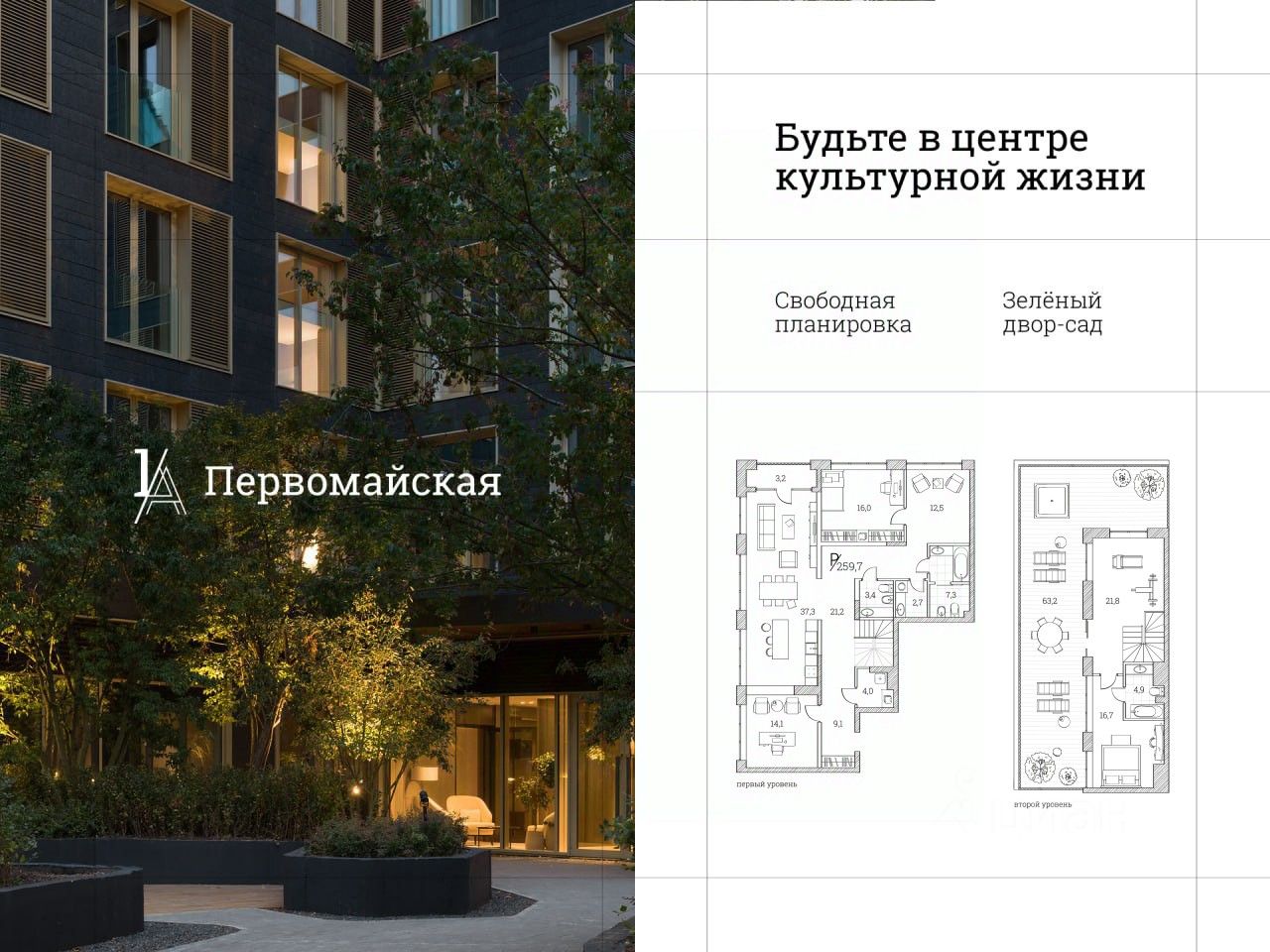 3-комн. апартаменты от застройщика в ЖК "1А Первомайская" на 7 этаже. Апартаменты без отделки, после оформления собственности можно делать ремонт. Общая площадь: 259.7 кв.м., жилая: 42.6 кв.м., площадь просторной кухни-гостиной: 37.3 кв.м. Угловая квартира, идеально подойдет любителям тишины и панорамных видов. В апартаментах одна лоджия, два совмещенных и один раздельный санузел. Наличие террасы в квартире дает возможность для создания зон отдыха в кругу семьи и друзей. Высота потолков 2.7 м.