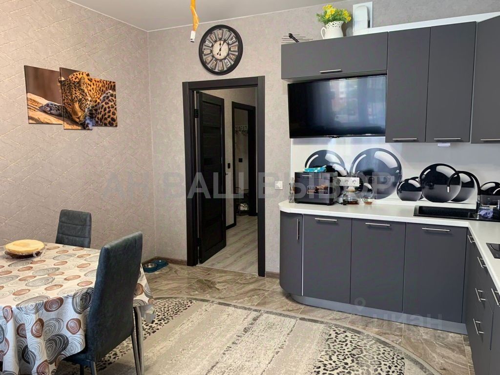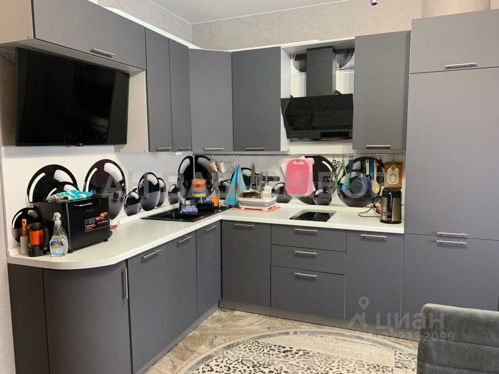 При продаже остаётся кухонный гарнитур со встроенной техникой.