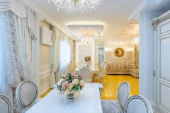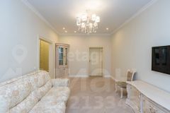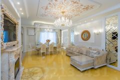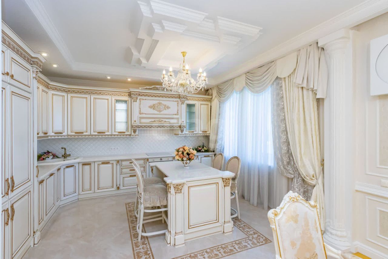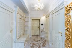 Просторная шестикомнатная квартира в 6-м микрорайоне предлагает продуманную планировку и высокий уровень комфорта. Общая площадь включает кухню-гостиную, две спальни, детскую, кабинет, комнату отдыха, две гардеробные с системой хранения и три санузла. Ремонт выполнен по индивидуальному дизайн-проекту с использованием качественных материалов: венецианская штукатурка на стенах, итальянские обои, заливные полы в гостиной, керамогранит в столовой, паркетная доска в комнатах. Вся мебель изготовлена на заказ в Италии, установлена оригинальная бытовая техника премиальных брендов.
