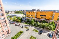 Квартира оснащена системой теплых полов с датчиками контроля, кондиционерами во всех помещениях, что обеспечивает комфортный микроклимат в любое время года. Дополнительные удобства включают теплый тамбур с вместительными шкафами для одежды и обуви, два балкона и современную систему сигнализации. Большие окна наполняют пространство естественным светом, создавая ощущение простора.