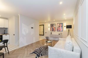 Квартира в формате два плюс, с большой кухней гостиной, просторной гардеробной, выходом окон на две стороны дома и Дизайнерским ремонтом, сделанным мастерами своего дела! Окна спальной комнаты и кухни гостиной выходят во двор. Квартира полностью мебелирована и готова встретить новых владельцев!