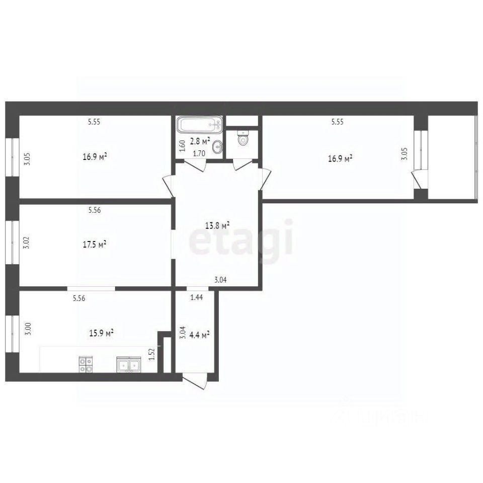 Просторная 3-х комнатная квартира - распашонка, где большая кухня- гостиная, две просторные комнаты, + гардеробная.