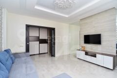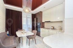 В квартире сделан современный ремонт. На стенах обои в светлых тонах. На полу ламинат 33 класса светлый дуб. Потолки в спальне,кухне и гостиной комбинированые: гибсокартон с натяжными. Межкомнатные двери в алюминевом профиле со вставкой белое стекло.