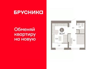 Квартира с кухней-гостиной и одной спальней в Октябрьском на Туре. Особенности планировки: вид во двор, предчистовая отделка, тёплая лоджия.