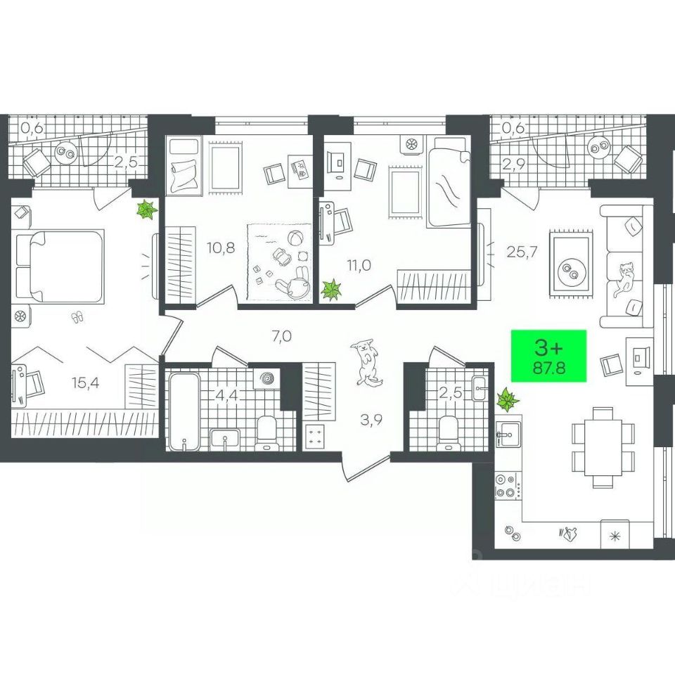 Продаётся 3-комнатная квартира в строящемся доме (1-Д3.1 (Глебова, 10)), срок сдачи: III-кв. 2026, общей площадью 87.83 кв.м., на 4 этаже. Компания 4D приступила к строительству нового жилого комплекса "Гранд квартал". Новый ЖК находится в зеленой зоне Калининского района, южнее микрорайона Тюменская слобода.