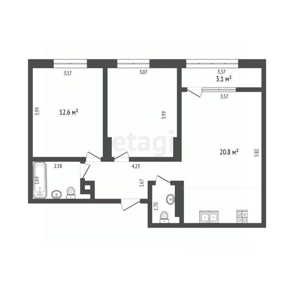 Предлагаю вашему вниманию квартиру самой востребованной планировки формата 2+ в новом, современном жилом комплексе "Первый ключ".
