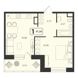 Продаётся 1-комнатная квартира в строящемся доме (ГП-4), срок сдачи: IV-кв. 2027, общей площадью 41.26 кв.м., на 9 этаже. Расположение, транспортная доступность