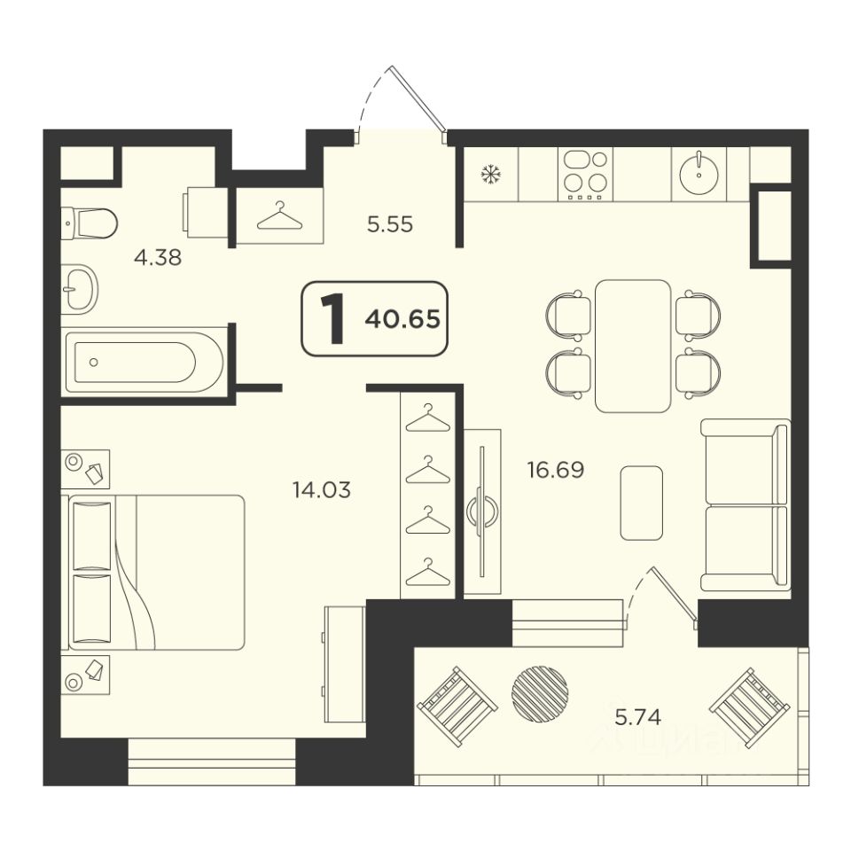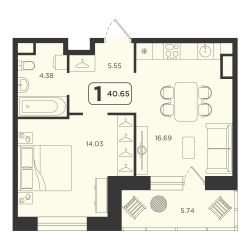 Продаётся 1-комнатная квартира в строящемся доме (ГП-4), срок сдачи: IV-кв. 2027, общей площадью 40.65 кв.м., на 11 этаже. Расположение, транспортная доступность