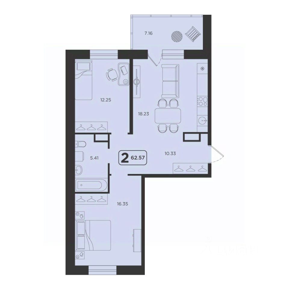 Продаётся 2-комнатная квартира в строящемся доме (ГП-4), срок сдачи: IV-кв. 2027, общей площадью 62.57 кв.м., на 11 этаже. Расположение, транспортная доступность