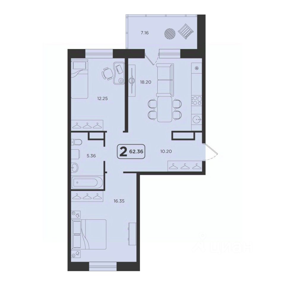 Продаётся 2-комнатная квартира в строящемся доме (ГП-4), срок сдачи: IV-кв. 2027, общей площадью 62.36 кв.м., на 22 этаже. Расположение, транспортная доступность