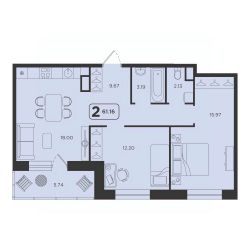 Продаётся 2-комнатная квартира в строящемся доме (ГП-4), срок сдачи: IV-кв. 2027, общей площадью 61.16 кв.м., на 10 этаже. Расположение, транспортная доступность