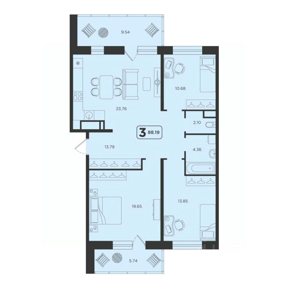 Продаётся 3-комнатная квартира в строящемся доме (ГП-4), срок сдачи: IV-кв. 2027, общей площадью 88.19 кв.м., на 12 этаже. Расположение, транспортная доступность
