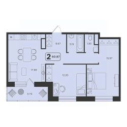 Продаётся 2-комнатная квартира в строящемся доме (ГП-4), срок сдачи: IV-кв. 2027, общей площадью 60.87 кв.м., на 17 этаже. Расположение, транспортная доступность