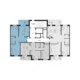 В домах микрорайона "Горизонт" представлены студии и квартиры с количеством комнат от одной до трех площадью от 23,90 кв. м до 81,37 кв. м с потолками высотой 270 см.