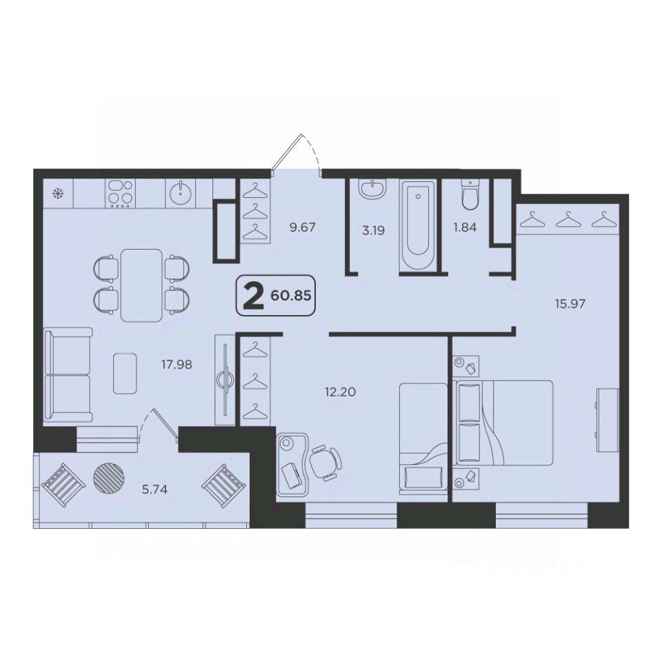 Продаётся 2-комнатная квартира в строящемся доме (ГП-4), срок сдачи: IV-кв. 2027, общей площадью 60.85 кв.м., на 23 этаже. Расположение, транспортная доступность