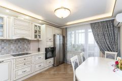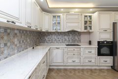 Кухонный гарнитур в классическом стиле это воплощение мечты любой хозяйки. Фурнитура Blum обеспечивает плавное и бесшумное открывание и закрывание, а встроенная техника Graude гарантирует безупречную работу. Посудомоечная машина Gorenje шириной 60 см и вместительный холодильник Samsung дополняют кухонный ансамбль.