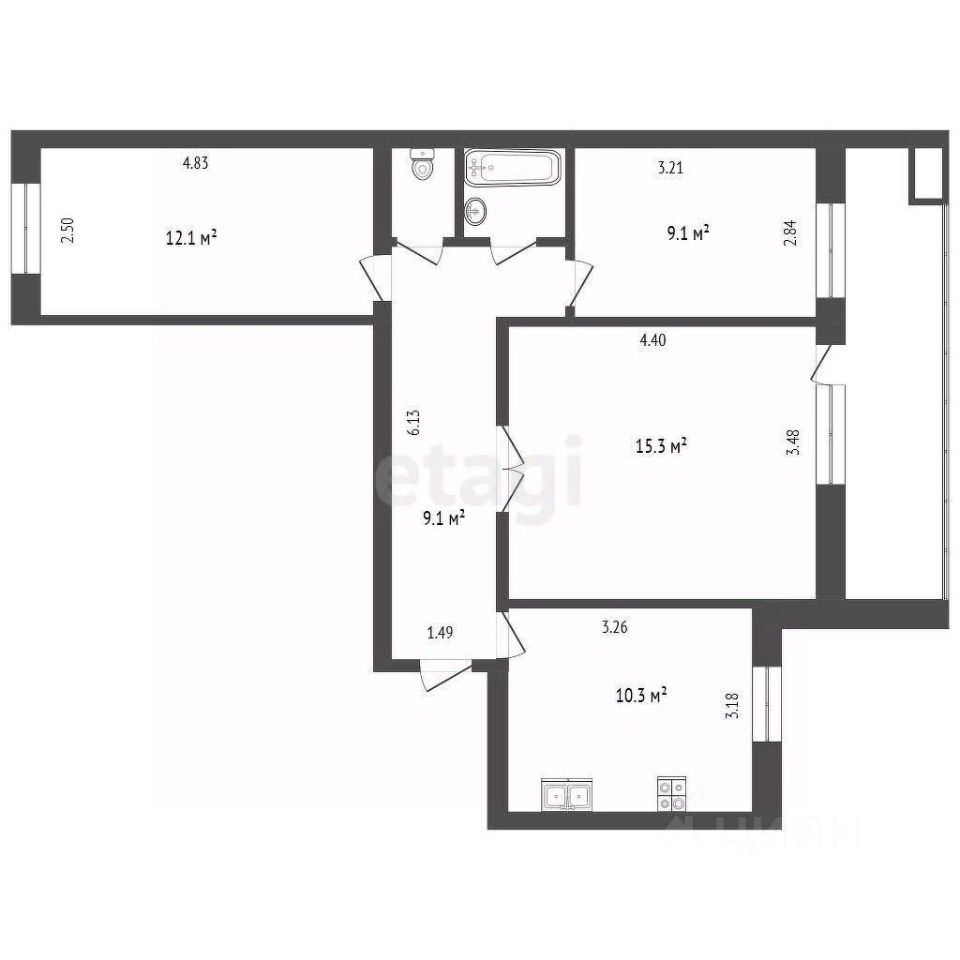 Просторная кухня (10 кв.м.) вдохновит вас на кулинарные шедевры, а комнаты площадью 12 кв.м, 9 кв.м и 15 кв.м позволят создать неповторимый дизайн. Раздельный санузел это комфорт для всей семьи.