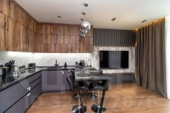 В квартире кухня-гостинная, жилая комната, сан.узел и балкон с великолепным видом. Ремонт выполнен по дизайнерскому проекту. Использованы современные материалы, продуманы детали интерьера для максимального комфорта и функциональности. Все комнаты выполнены в едином стиле, создавая гармоничное пространство