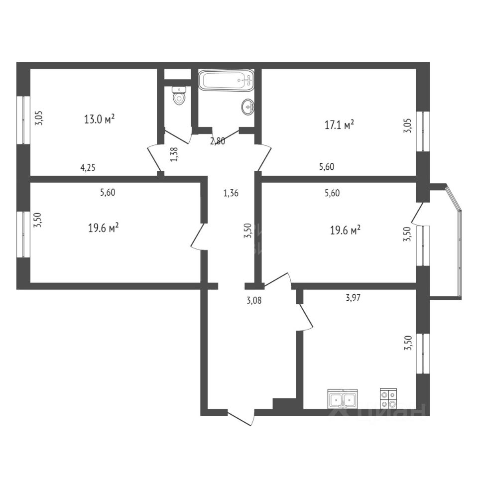 - Удобная планировка с просторными комнатами