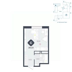 Вместительная студия с большой ванной комнатой и прихожей. В комнате предусмотрено грамотное зонирование на нишу и обеденную зону, а также на гостевую, которая легко трансформируется в спальню.