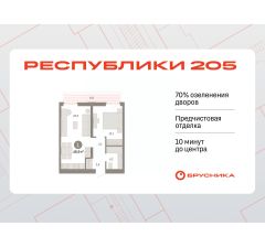 Однокомнатная квартира с предчистовой отделкой в ЖК "Республики 205" на 5 этаже. Общая площадь: 48.88 кв.м., жилая: 12.1 кв.м., площадь просторной кухни-гостиной: 20.8 кв.м. Все окна выходят на одну сторону. В квартире один балкон, один совмещенный санузел. Высота потолков 2.7 м.