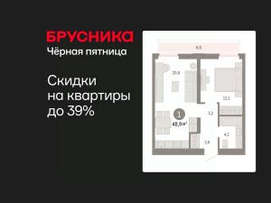 Однокомнатная квартира от застройщика с предчистовой отделкой в ЖК "Республики 205" на 5 этаже. Общая площадь: 48.88 кв.м., жилая: 12.1 кв.м., площадь просторной кухни-гостиной: 20.8 кв.м. Все окна выходят на одну сторону. В квартире один балкон, один совмещенный санузел. Высота потолков 2.7 м.