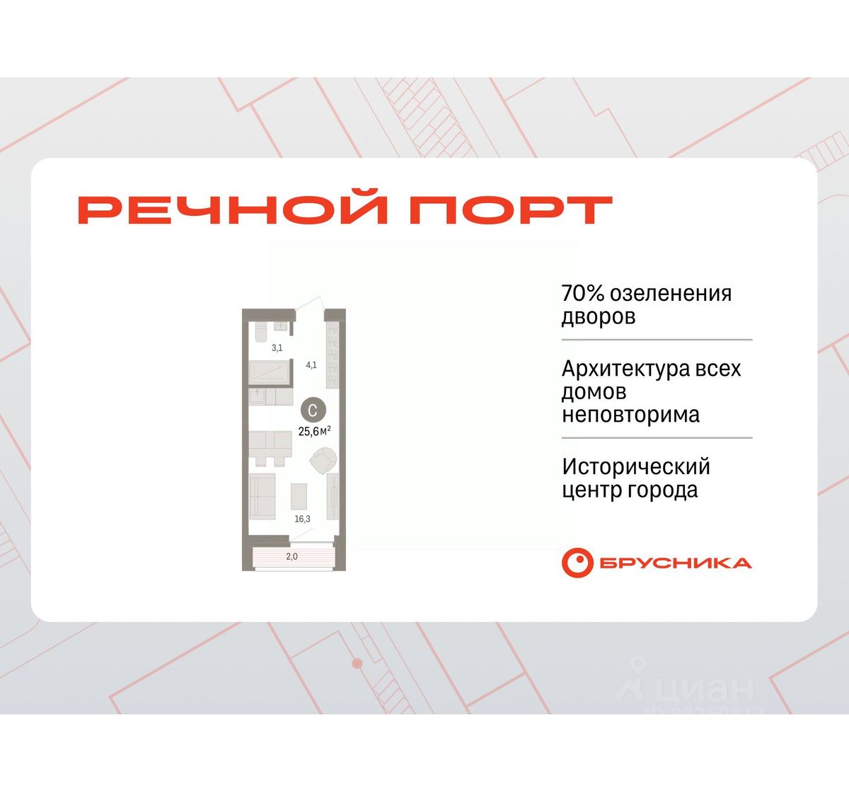 Студия в жилом районе "Речной порт". Особенности планировки: лоджия, предчистовая отделка.