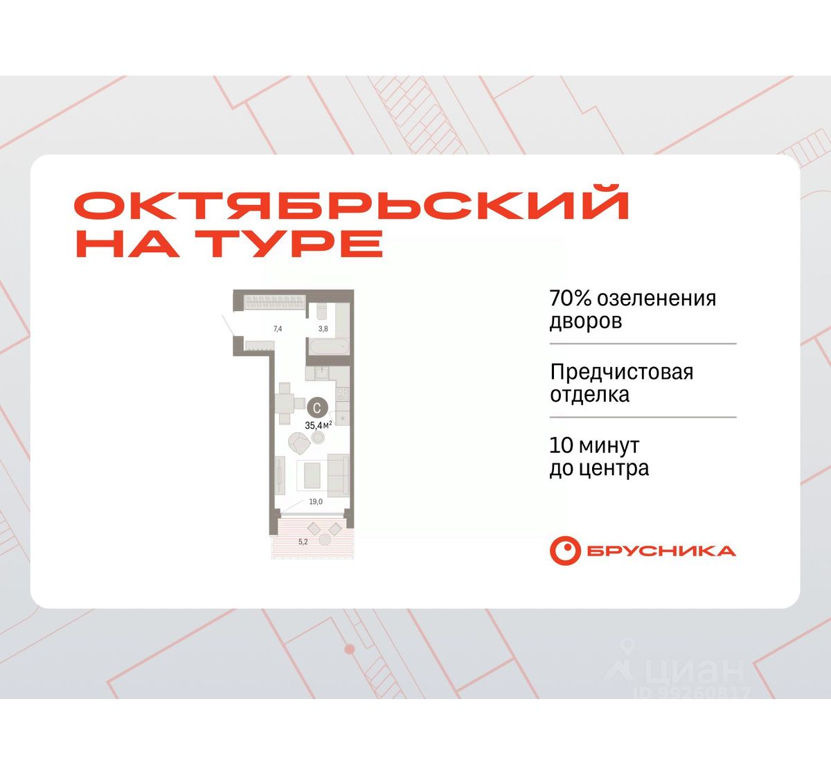 Студия в Октябрьском на Туре. Особенности планировки: вид во двор, предчистовая отделка, балкон.