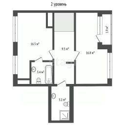 На втором уровне находится мастер-спальня (20 кв. м) с собственным санузлом (5,2 кв. м) и дополнительным кабинетом (16,8 кв. м), а также балкон (1,9 кв. м) для утреннего кофе с видом на природу. Все окна квартиры панорамные, что наполняет пространство светом и создает атмосферу уюта в любое время суток.