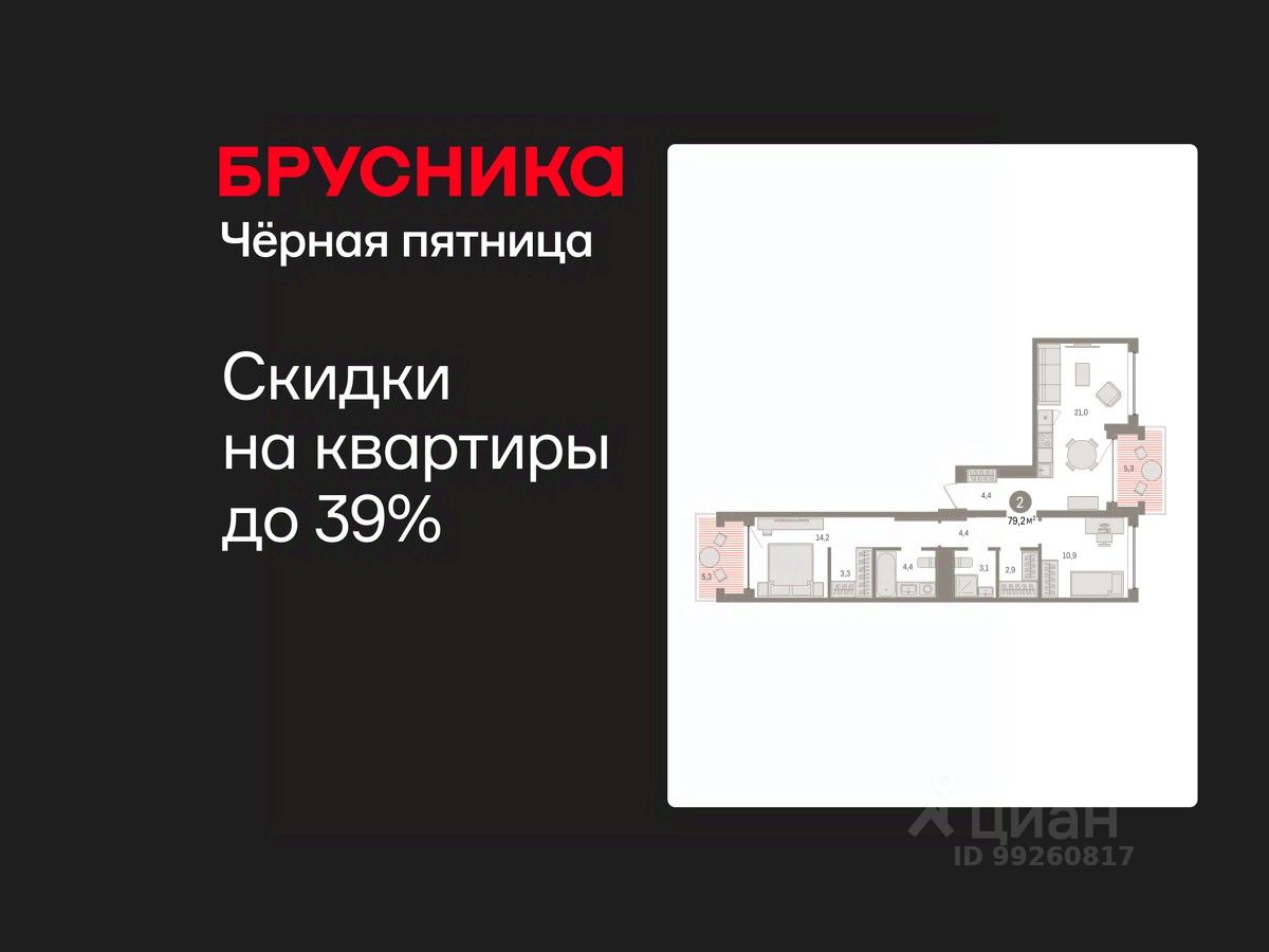 Двухкомнатная квартира с предчистовой отделкой в ЖК "Дом у озера" на 5 этаже. Общая площадь: 79.21 кв.м. Высота потолков 2.7 м.